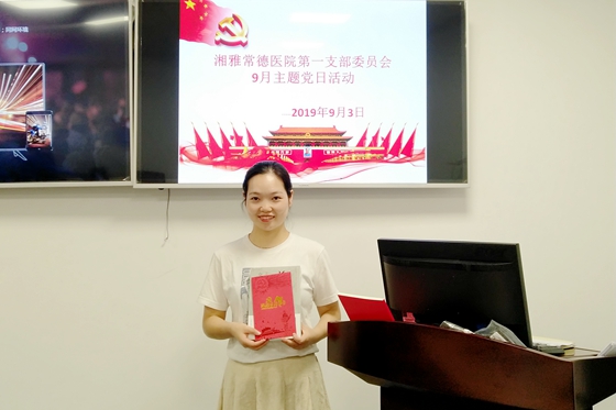 9月3日晚,湘雅常德医院第一党支部召开了第三季度支部党员大会暨九月份主题党日活动。活动由支部书记周敏同志主持,全体未值班党员参加。