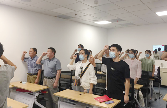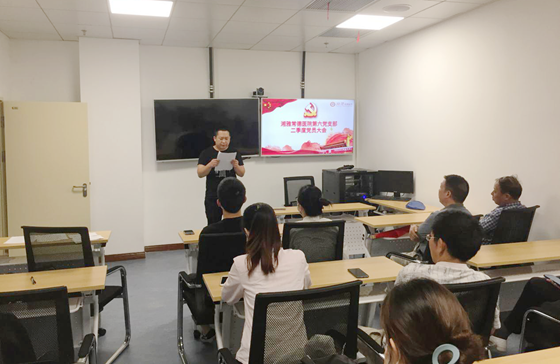 第二项是第六党支部支部委员毛峰同志带领全体党员重温入党誓词,希望大家通过“寻初心,守初心、践初心”主题学习,坚定信念,增强凝聚力、战斗力,不忘初心,继续前进。