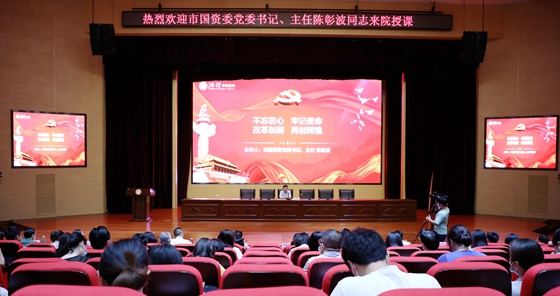 为纪念中国共产党成立99周年,深入贯彻落实习近平新时代中国特色社会主义思想,教育引导广大党员树牢“四个意识”、坚定“四个自信”、做到“两个维护”,激励广大基层党组织和党员干部新时代新担当新作为,6月29日上午,市国资委党委书记、主任陈彰波同志来湘雅常德医院讲授专题党课。本次活动由医院党委书记李碧海同志主持,经投集团党委书记、董事长曾克非同志以及党委副书记、总经理高见同志莅临会场,医院全体院领导、党员、行管人员及经投集团部分党员同志参加了本次的党课学习。
