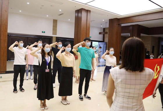 参观完博物馆,第七党支部新发展的三名党员在鲜红的党旗下进行了庄严宣誓,老党员们重温入党誓词,大家一起举起右拳,响亮的誓词回响在博物馆上空:“我志愿加入中国共产党,拥护党的纲领,遵守党的章程......”。三位新党员进行宣誓后纷纷表示:作为一名新党员,要牢记入党誓词,牢记历史,时刻保持清醒的头脑和昂扬的斗志,为医院的发展奉献一份力量。”