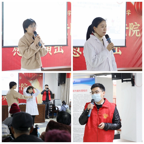 活动以中老年人最关心的高血压科普讲座展开,健康管理中心葛菲凡医师以“关爱健康 从关注血压开始”为主题详细地讲解了什么是高血压、高血压的表现以及预防高血压等知识。康复中心鲁婷则亲身示范,教老人们“强身健体操”,以提高身体素质、提高心肺功能和肌肉耐力,促进肌体各组织器官的协调运作,使人体放松达到最佳机能状态。泌尿外科朱敏主治医师以“前列腺增生·前列腺癌”为主题为老人们科普了为何频繁夜尿、怎么解决夜尿频繁等健康知识。