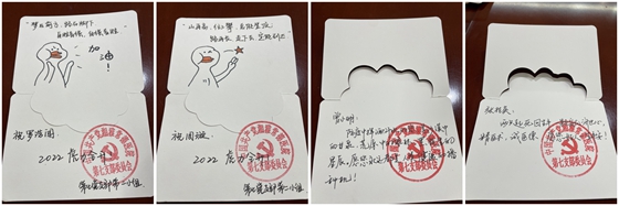 据悉,为迎接新春到来,增进支部党员间的交流互动,营造浓厚的节日氛围,第七党支部以党小组为单位,每位党小组长亲笔写下对小组成员的新年祝词。每位党员在收到新年贺卡后都感受到了党组织对自己的深切厚爱,同时表达了对党组织的真挚谢意。
