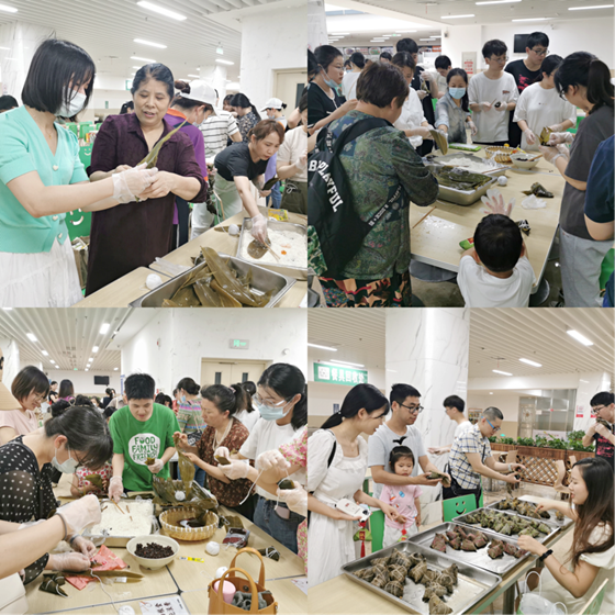 活动中,由专业老师带领支部党员学习包粽子的技巧方式,大人小孩先跟着学习捋粽叶、做漏斗、填糯米、压实、封口、扎捆,不消多久人人都成了包粽能手。一片片清香的粽叶,一粒粒晶莹的糯米,在一双双翻飞的巧手下便做成了各式各样玲珑可爱、各具特点的诱人粽子,三角形、牛角形、长方形、喇叭形,全摆放在盘中。活动现场欢声笑语,其乐融融,大家看着自己的劳动成果,个个眉开眼笑,不亦乐乎,充分感受到端午节民俗文化的魅力。