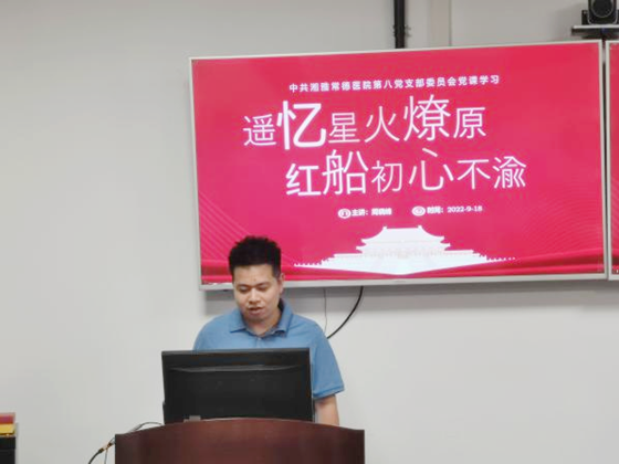 9月19日晚,湘雅常德医院第四党支部召开9月主题党日活动,会议由支部书记蒋欣杰主持,党委副书记周晓峰及全体非值班党员参会。