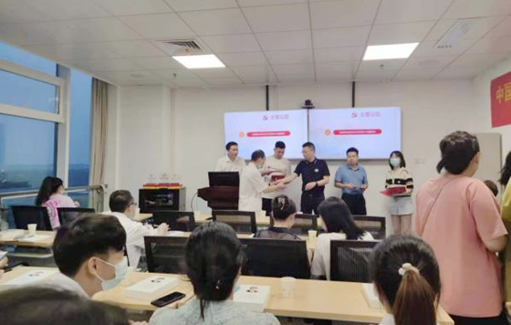 周晓峰同志首先为支部学习强国积分排名前三名的党员颁发了学习强国奖杯,肯定了三位党员同志的学习态度,并为全体党员颁发了政治生日贺卡,勉励各位党员同志不断提高党性修养,发挥好党员的先锋模范作用,做好本职工作,不断提高自身业务水平,提升服务质量。