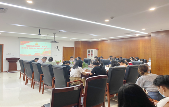 9月19日晚,湘雅常德医院第二党支部在行政楼518会议室召开第三季度支部党员大会暨9月主题党日活动,会议由支部书记欧阳波主持,党委副书记、院长肖目张、纪委书记皮建宏、纪律检查室主任鲁晓琴和全体非值班党员参会。