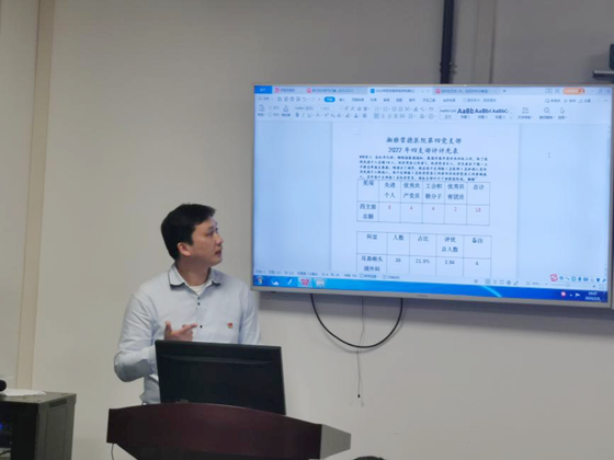 首先,支部书记蒋欣杰就2022年支部党建工作做了述职报告,分别从党建工作成绩、支部党建问题及整改落实、2023年支部党建重点推进工作进行了详细的阐述。蒋欣杰同志指出,在过去的一年中,支部党建工作取得了一定的成绩,但也凸显出了不足,2023年是新的一年,作为支部一份子,每位党员都要参与到支部建设中来,积极参加支部活动,为支部建设提意见,说想法,共同推进支部高质量发展。