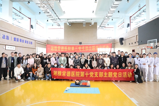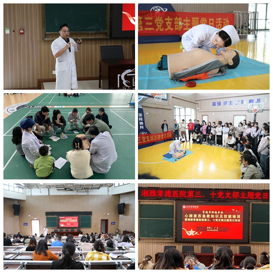 4月9日,湘雅常德医院第三党支部联合第十党支部开展了一次“心肺复苏急救知识技能进校园”的主题党日活动,特别针对郡德学校教师群体进行专业心肺复苏培训,旨在提升学校教职工应对突发情况的急救能力。