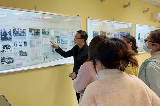 (图为贾天洋秘书长为入党积极分子们讲解农工党党史)