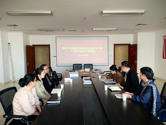 11月5日下午,农工党湘雅常德支部召开入党积极分子考察会,农工党常德市委会秘书长贾天洋、湘雅常德支部主委陈芳田、湘雅常德支部全体党员、3名入党积极分子参加会议。