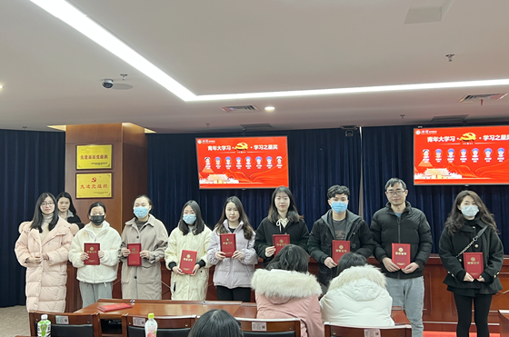 会议伊始,团委分别对在三团支部青年大学习积分竞赛活动中表现突出、被评为“学习之星”的8名团员和1个“先进学习小组”进行表彰颁奖。