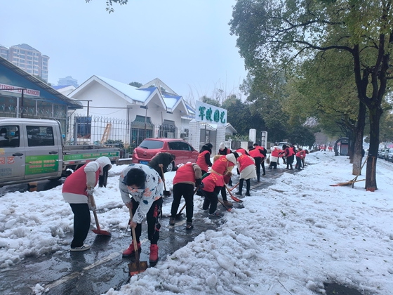 此次铲雪行动不仅为居民的出行带来了便利,更是体现了湘雅常德医院志愿者们的社会责任感和奉献精神,红色的马甲点缀了白色的街道,也激励着更多的人加入到志愿服务的行列中来。
