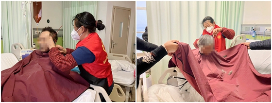 早上9时,理发师和志愿者们准时到达医院,他们佩戴好口罩,进行体温测试,然后对理发工具进行严格的酒精消毒。一切准备就绪后,为患者们提供免费理发服务。