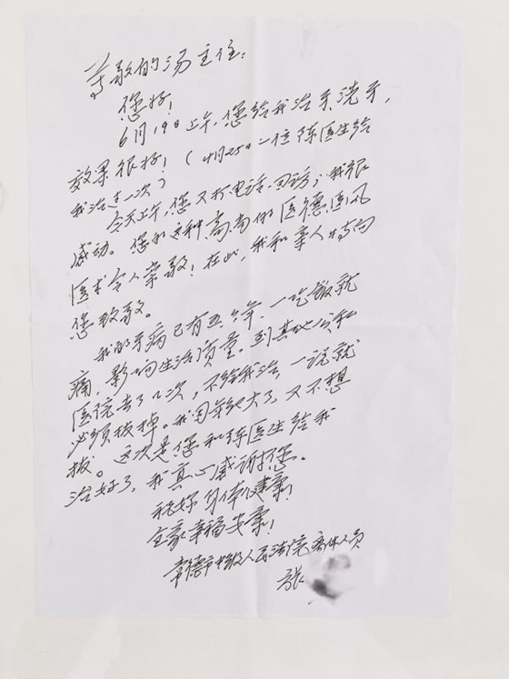 一周后,口腔科再次对张爷爷进行了电话回访,询问有没有不适情况,并进行了一定的健康指导。当天下午,张爷爷就给口腔科寄来了他的亲笔感谢信。