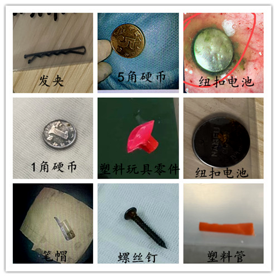 1.儿童消化道异物最多的当属硬币,还有电池、发卡、纽扣、磁铁、戒指、笔帽、拉链头、玩具等,还有吃东西时不小心卡在喉咙口的鱼刺、鸭骨头、枣核、瓜子等,甚至还有铁钉和水银体温计等千奇百怪的物件,家长要提高防范意识,告知孩子不要将物品塞入口中,不能在吃东西时跑跳,要经常检查孩子接触过的物品是否完整,婴幼儿玩耍、进食时,成人需全程监护,勿走神。