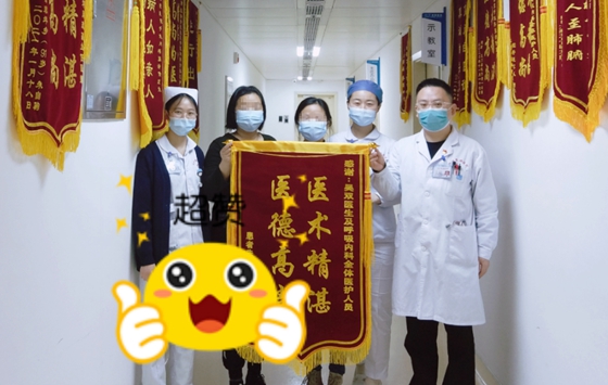 “感谢欧阳医生,感谢吴双医生,感谢护士天使们的精心护理,感谢你们……今天,我是特意来送锦旗的。”3月19日,患者家属将写有“医术精湛,医德高尚”的锦旗交到了呼吸内科欧阳波副主任医师和吴双主治医师手里。