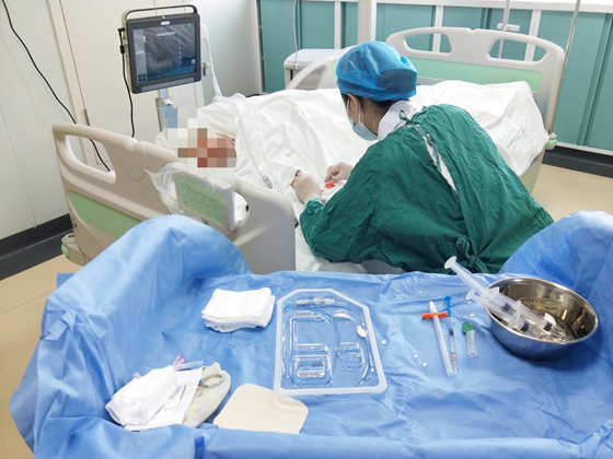 11月25日,呼吸内科护师蹇洁洁在超声引导下为一例肿瘤化疗患者成功实施首例经外周中心静脉导管(简称PICC)置入术。这是呼吸内科自开诊以来,首次独立开展PICC置管技术,此项护理技术的成功开展,不但弥补了静脉留置针及中心静脉穿刺保留时间短的缺陷,同时也填补我院呼吸内科此项护理技术的一项空白。