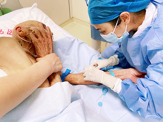 近日,湘雅常德医院呼吸内科护师刘冠宏为一名67岁男性患者成功实施静脉中等长度导管置入术。这是继呼吸内科独立开展PICC置管技术后,再次开展静脉中等长度导管置管新技术。此项新护理技术的成功开展,将为更多长期输液穿刺困难及输注高危强刺激药物患者保驾护航。