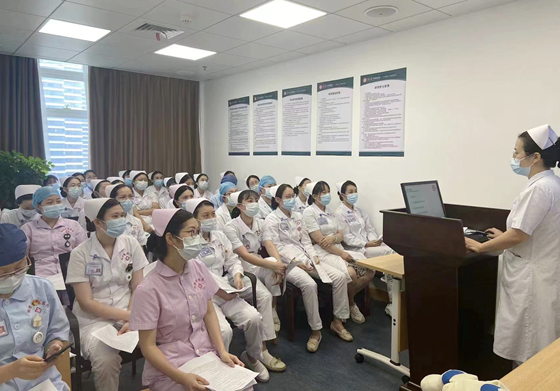 据内分泌科护士长付小爱介绍,内分泌科健康教育的形式多样,除了每月定期组织糖尿病健康教育大讲堂、拍摄宣教视频和发放疾病宣传资料等以外,为方便出院患者,实现全程护理,2021年还创建了微信公众号和病友微信群,定期发布糖尿病专科知识,并开设了糖尿教育门诊和糖尿病足护理门诊,指导糖尿病饮食、胰岛素注射指导和糖尿病足伤口换药等,实现延续性护理。