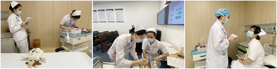 理论授课后,由糖尿病教育护士汪艳和欧阳佳两位老师分别进行快速血糖监测和胰岛素安全注射操作示范。操作示范后,学员分为3组,进行分组练习和操作考核。