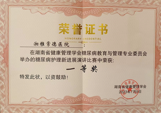 据悉,在此次会议中,湘雅常德医院付小爱被聘为湖南省健康管理学会糖尿病教育与管理专业委员会常务委员,吕小辉、沈菊、吴红美、欧阳佳、徐戊环5人被聘为委员。7月8日,门诊部主管护师吕小辉作为“第七期糖尿病教育者培训班”代表在湖南省健康管理学会糖尿病健康教育与管理专业委员会学术年会、糖尿病教育者结业典礼上分享《对一例初发糖尿病患者进行糖尿教育的个案汇报》。同时,在7月9日举办的糖尿病护理新进展演讲比赛中,我院内分泌科护士长付小爱主管护师以演讲主题《糖尿病逆转不是梦》荣获本次比赛一等奖。此次演讲比赛由湖南省健康管理学会糖尿病教育与管理专业委员会主办,旨在促进医护主动学习糖尿病前沿知识,提升糖尿病护理能力及演讲技巧。