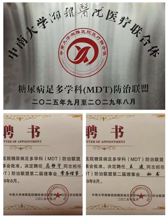 近日,由中南大学湘雅医院主办,益阳市中心医院、复旦大学附属华东医院承办的“糖尿病足多学科诊疗团队的组建与应用培训班暨湖南省糖尿病足多学科(MDT)防治联盟成立大会”在益阳市顺利举行。会上湘雅常德医院内分泌代谢科再次获得“糖尿病足多学科防治联盟”成员单位授牌,这标志着湘雅常德医院在糖尿病慢性并发症防治领域,尤其是糖尿病足这一疑难重症的诊疗与管理方面,迈入了与国内先进医疗资源对接、协同发展的新阶段。