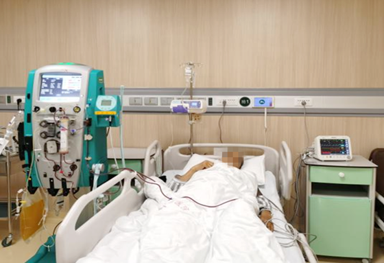 在血浆置换的治疗中,伍成松副主任医师和郭丹主治等医护人员严密监测患者病情,查看机器参数及管路是否通畅,有无过敏等不良反应等情况,以确保血浆置换顺利完成。