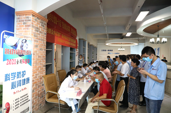 据悉,“百年再出发,迈向高水平科技自立自强”是2021年全国科普日活动主题,全省肾内科学专家纷纷响应湖南省医学会号召,把优质医疗服务送到基层百姓身边。湘雅常德医院肾内科成小苗主任作为湘雅常德医院博士团队成员之一,走进常德市经开区中小企业园区,为企业职工送温暖,为他们进行医疗咨询、免费测量血压血糖等系列活动。让企业职工足不出户就享受到优质的医疗资源,推动“智惠行动”全面融入科普日活动,科学防护,心肾健康,全民科普,推广科学护肾新理念,助力服务社会文明程度提升。