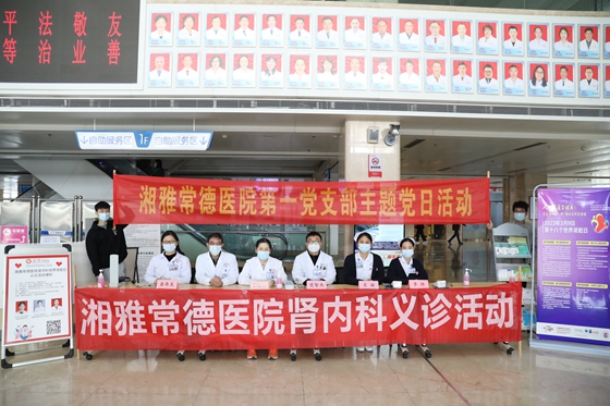 今年3月9日是第18个世界肾脏日,至此世界肾肝日主题为“人人享有肾健康、关爱高风险人群,预防意外肾损伤”。为提高全社会对慢性肾脏病的认识,保护肾脏健康,湘雅常德医院第一党支部书记范爱德和肾内科主任成小苗带领肾内科团队,在3月9日开展了第一党支部3月主题党日活动暨世界肾脏日义诊活动。
