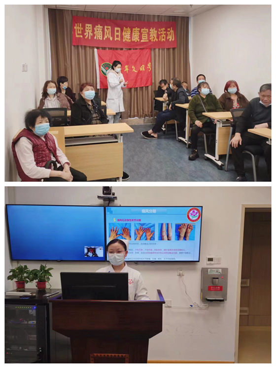 风湿免疫科青年文明号集体组织了科普会,由护士谭雅婷给病友讲解痛风的日常护理及生活中的注意事项,主治医师黄露露主持答疑解惑环节,针对性地回答广大病友的疑问。高尿酸血症不仅会引起痛风,并且是代谢性疾病(糖尿病、代谢综合征、高脂血症)、慢性肾病、心血管疾病、脑卒中的独立危险因素。高尿酸血症的高危人群包括高龄、男性、肥胖、一级亲属中有痛风史、静坐的生活方式等,对于这部分人群,要定期进行筛查,及早发现高尿酸情况。