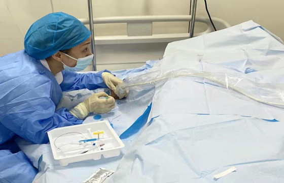 对于很多住院患者来说,每天进行输液治疗穿刺是非常痛苦的事情,即使是使用了静脉留置针,也因为药物、患者血管条件等原因,留置针的留置时间也只有1-4天左右,且容易出现外渗、静脉炎等并发症。为了减少反复穿刺以及静脉穿刺并发症为患者带来的痛苦,基于目前比较成熟的技术可以根据患者的病情及使用需求选择PICC导管(经外周静脉穿刺置入中心静脉导管)及输液港,以上输液工具在输液安全方面有着独到的优势。但对于像神经内科、心内科等住院一个月左右的患者来说,上述方式价格相对昂贵,部分家属及患者会因为价格问题拒绝置管。基于此,湘雅常德医院开展了静脉中等长度导管(简称中线导管)置入术,为患者解决输液难题,减少静脉治疗并发症,提升静疗专科服务水平。