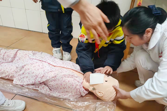 孩子们和“培培姐姐”一道,认真学习如何判断心脏骤停、怎么规范操作。因为我国目前心肺复苏知识与技能还未普及,心跳呼吸骤停发生6分钟之后脑细胞就会不可逆死亡,而在黄金救护时间内,急救车和专业救护人员往往无法赶到,因此院前突发心脏骤停的抢救成功率非常低。作为新时代的接班人,孩子们学会心肺复苏,是学会自救、互救和他救的一门生存技能。