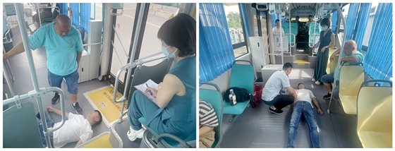 演练围绕“乘车同行同事出现突发性脑中风”为主题进行应急演练。演练中,我院医务人员针对应急流程、倒地患者处理等提出一系列可行的建议和措施,同时建议公交司机在现实情况下要灵活应变,优先保障身边人的安全。