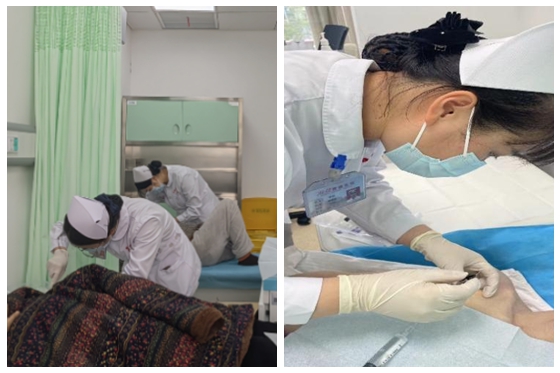 4月16日及19日上午,血管通路专科护理中心进行了免费义诊活动。肿瘤科静脉治疗专科护士为患者免费提供了PICC导管、输液港等中心静脉导管免费维护(包括材料费)及导管家庭护理小知识宣讲等活动。