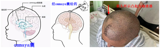 (2)Ommaya囊可以储存化疗药,进行控释化疗,向脑室内直接注射化疗药物,可以使药物持续地向外释放,从而持续有效地杀伤肿瘤细胞;