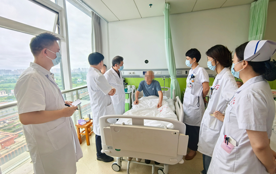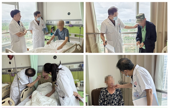 本次联合查房由我院中南大学湘雅医院委派专家肿瘤科主任姜武忠教授与中西医结合科特聘中医专家唐建清教授共同主持。查房团队深入病区,针对9位病情复杂、处于不同治疗阶段的肿瘤患者进行了重点会诊。通过四诊,参辩证为气阴两虚,瘀毒内结,提出益气养阴,化瘀解毒的治法,并建议配合特定的穴位贴敷,改善乏力纳差。