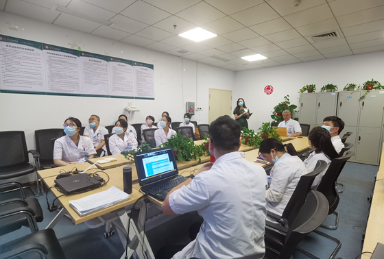 线上会议邀请湘雅常德医院李军烽副主任医师、陈俊主治医师、龙瑜姣医师,长沙市第一医院刘萍教授,中南大学湘雅医院王丽静教授,中南大学湘雅三医院刘彩虹教授,永州市中心医院马驯教授,湘南学院附属医院李娜教授。线下会议在湘雅常德医院肿瘤科二区示教室进行,肿瘤科全体医师参会。