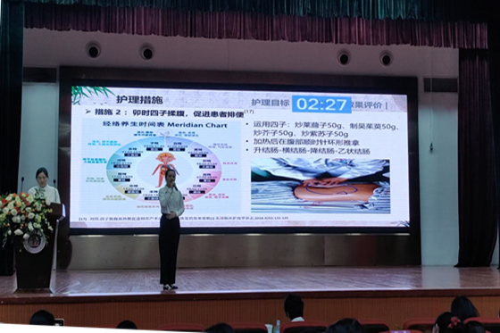 在外科护士长金惠的指导下,中西医结合、康复科护理团队由中西医结合、康复科护士长刘艳朋、主管护师阳萍上台进行了精彩汇报。通过团队成员主管护师张闻、护师徐申雯等人的共同努力,结合现代医学与传统中医疗法,成功缩短了患者的住院时间,提高了康复效率,同时显著提升了患者的满意度和生活质量,赢得了专家评委的一致好评,并最终脱颖而出获得二等奖。