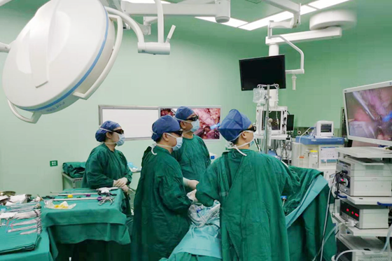 手术在麻醉科、手术室等科室的大力协作下,由普外科肖广发主任主刀,肝胆组曾虎副主任医师、聂云贵主治医师、张涛医师组成的团队一路过关斩将、克服重重困难,成功为患者实施了完全3D腹腔镜胰腺十二指肠切除术。手术仅通过患者脐部和左右侧上腹部5个0.5-1.0cm的小孔,利用腹腔镜的放大效应,完整切除肿瘤标本,精细完成胰肠、胆肠和胃肠三处消化道重建吻合等高难度操作。整个手术历时6小时30分钟,术中失血约100ml,未输血,术后患者恢复满意,第2天可下床活动,第3天进流质饮食,术后无胆漏、胰漏等并发症,不日即将出院。病理检查显示“胰腺导管内乳头状粘液瘤”。急诊电话:0736-2120120