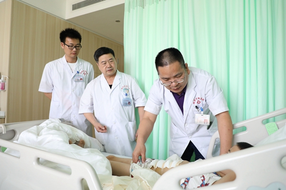 8岁的小诚从出生起他肚子左侧就要比右侧要凸出一些,但无痛痒之感,父母也就没有在意。可随着小诚长大,腹部左侧的凸出也就更为明显。直至今年1月份,小诚因右侧睾丸鞘膜积液至湖北某医院做手术,术前医生注意到了小诚隆起的腹部,中止手术后检查其腹部藏着一个皮球大小的肿瘤。受当地医院技术条件所限,建议其至上级医院治疗。今年暑假,小诚一家慕名来到湘雅常德医院普外科就诊。追问孕史,小诚妈妈回忆起曾经孕检时,腹中本是双胞胎,结果生产后却只见小诚。也就是说,双胞胎还在腹中发育时,强的一方已将弱的一方“吞噬”了,所以小诚腹中的肿瘤正是他“寄住的同胞兄弟”,学名畸胎瘤。