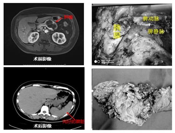 对于生长在胰腺体尾部的肿瘤,其主要治疗方式为连带脾脏切除的“胰体尾切除术”。随着影像技术发展、对胰腺肿瘤生物学行为的认识加深及腹腔镜技术的提高,不分青红皂白的“无辜牺牲”脾脏显然违背医学原则和有损病人利益。