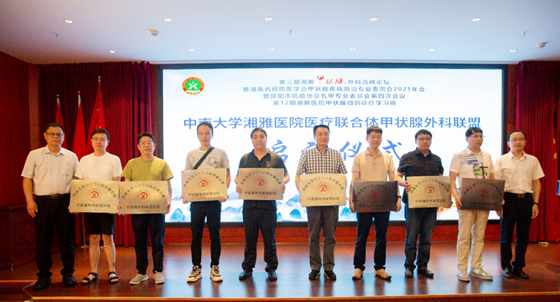 为推进甲状腺癌规范化诊治,推进诊疗新技术在基层医院开展,7月23至24日,第三届湘雅甲状腺外科高峰论坛会议在湖南邵阳顺利召开。本次会议同时举办了中南大学湘雅医院医疗联合体甲状腺外科专科联盟成立仪式,湘雅常德医院普外科加入该联盟。