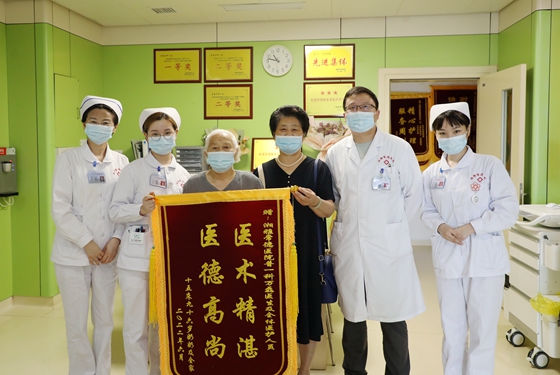 近日,湘雅常德医院普外科一区医护团队接过一位96岁高龄患者刘奶奶(化名)送来的鲜艳锦旗,在送其离院后,大家感慨万千:“我们又迎接了一次危急重症高龄患者‘生死救援’的挑战!”