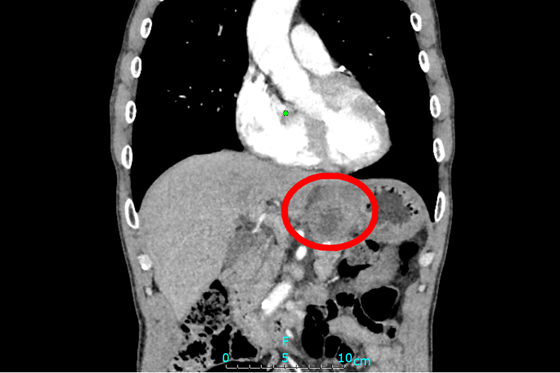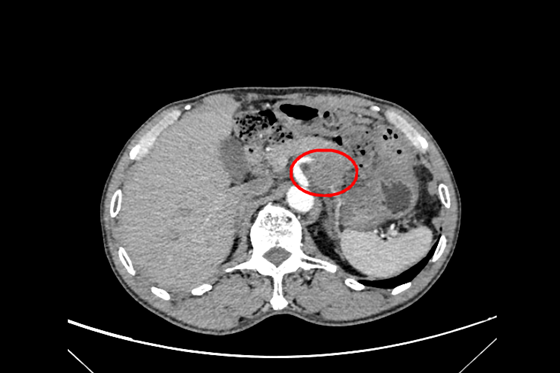 今年64岁的徐先生,一月前出现每日进食后感上腹部疼痛不适,呈阵发性钝痛。在当地医院就诊,检查发现左上腹有一肿物。听闻廖国庆教授在湘雅常德医院,为求进一步治疗,徐先生一家慕名来到湘雅常德医院普外科就诊。