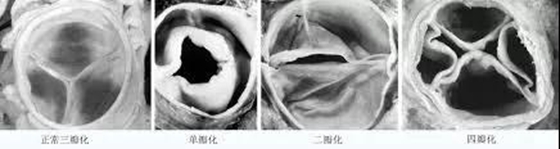 正常的主动脉瓣是由三个等大小的瓣叶构成,此形态被称为“三瓣化”。就主动脉瓣所处的环境和其功能而言,这种等大小的三瓣化是最优结构。人的心脏在胚胎发育过程中会出现少数主动脉瓣非三瓣化的异常情况,如单瓣化、二瓣化、四瓣化,主动脉瓣结构的异常带来的结果有两个:一是主动脉瓣功能的异常,即指瓣口狭窄或者关闭不全;二是不良的血液流场,湍流或者涡流会使主动脉瓣瓣叶受损,过早出现瓣叶脱垂、钙化或发生感染。