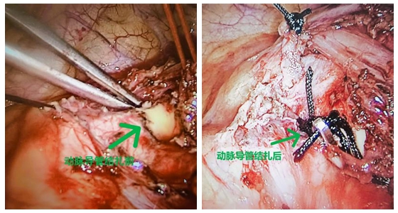 病人住院后,以张阳春主任为首的心胸外科团队反复研究分析患者病情,考虑到一般治疗动脉导管未闭的手术方式有传统的开胸缝扎,这种手术方式是最安全,即使术中出现出血意外也容易控制,但是创伤大,术后恢复慢,胸部手术切口长,不美观。另外还有介入下的封堵术,这种手术方式创伤小,但是存在费用高、患者术中需要照射大量射线、同时有封堵伞脱落的风险。经过讨论,考虑到患者动脉导管未闭为管型,且长度约有1cm,张阳春主任团队决定采用微创胸腔镜下给患者行动脉导管未闭结扎术,此种手术方式即能达到微创、损伤小的目的,又能兼顾到费用低、疗效确切。但这种腔镜手术需要主刀医生不仅熟知心脏大血管知识,而且需要同时熟练掌握胸腔镜技术,对主刀医生手术操作有更高的要求。为了保证手术的成功,医院麻醉科特意安排熟练术中食道超声的郏治平、方磊麻醉医生为手术保驾护航,为外科医生手术操作指明方向。