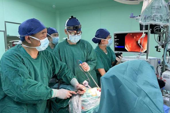 湘雅常德医院为李大爷开辟绿色通道,立即将患者送入手术室进行术前准备。同时为确保手术顺利进行,消化内科派出郑平医师进行术中胃镜,为外科医生手术保驾护航。心胸外科医师手术团队开胸进去后发现李大爷胸腔内全是污染的如同潲水一般漂浮的油脂、菜花等胃内容物,整个肺部及胸腔已经感染严重。心胸外科医生在彻底清除患者胸腔污染物后,用络合碘、双氧水、及生理盐水反复冲洗胸腔直至干净。同时,在消化内科的术中胃镜的协助下确定食管破口位置,缝闭食管破口。经胃镜确认食管破口缝合良好后,顺利结束手术。目前李大爷术后恢复良好,已经进饮进食。每次医生查房,李大爷都激动得留下眼泪,感谢湘雅常德医院救他一命。