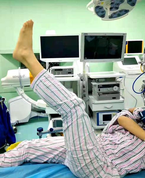 2月20日,在张朝跃主任指导下,陈芳田副主任医师与组上医师共同配合,为患者在局麻下行经皮微创椎间孔镜下椎间盘突出摘除术。随着椎间盘髓核逐步摘除,神经根逐步松弛,术中患者症状明显缓解,术后第二天患者就可在腰围保护下下床活动,万阿姨非常满意,解决了她多年的顽固性腰腿痛。出院前,万阿姨硬是要塞给陈医生一个红包,被陈医生拒绝了,他笑着说:“为患者战胜病魔是我们医务人员的共同目标!”
