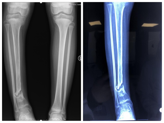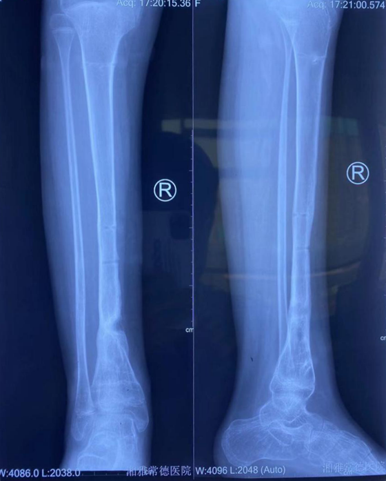 2018年1月,11岁的蓓蓓突然觉得右小腿红肿疼痛,伴有高热畏寒,于当地就诊后诊断为右胫骨急性血源性骨髓炎,但由于对此疾病的认识不足,未及时彻底控制急性骨髓炎的进程,最终发展成慢性骨髓炎并病理性骨折。随后的一年,蓓蓓去到了大大小小的医院,经历了大大小小的手术均未取得好的成效,还曾被专家告知将面临截肢,本该活泼好动的她逐渐变得郁郁寡欢。