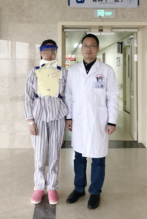 12月17日,张朝跃教授、张丕胜主任医师及陈芳田副主任医师组成的手术团队为患者实施了颈椎前路病灶清除人工椎体置换手术。术后,患者痛苦立马解除,经过骨科医师及金惠护士长带领的护理团队悉心照料和康复指导,目前已经在头颈胸支具保护下顺利恢复中。